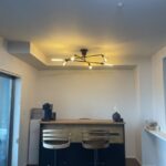 天井との間に空間を設けアッパーライト機能もある照明。