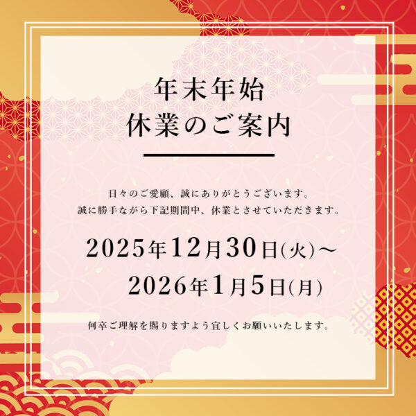 休業日 : 2025年12月30日(火)~2025年1月5日(月)